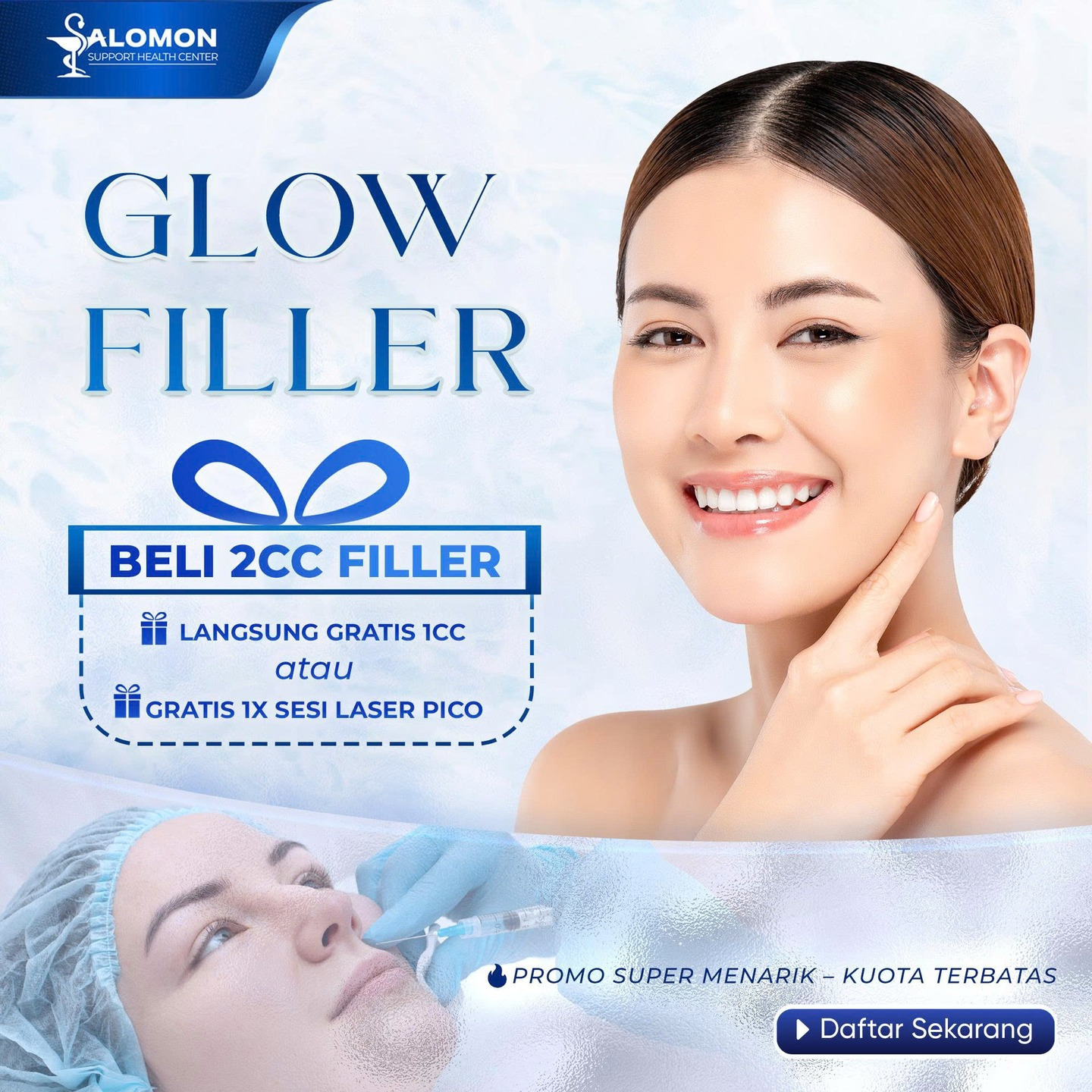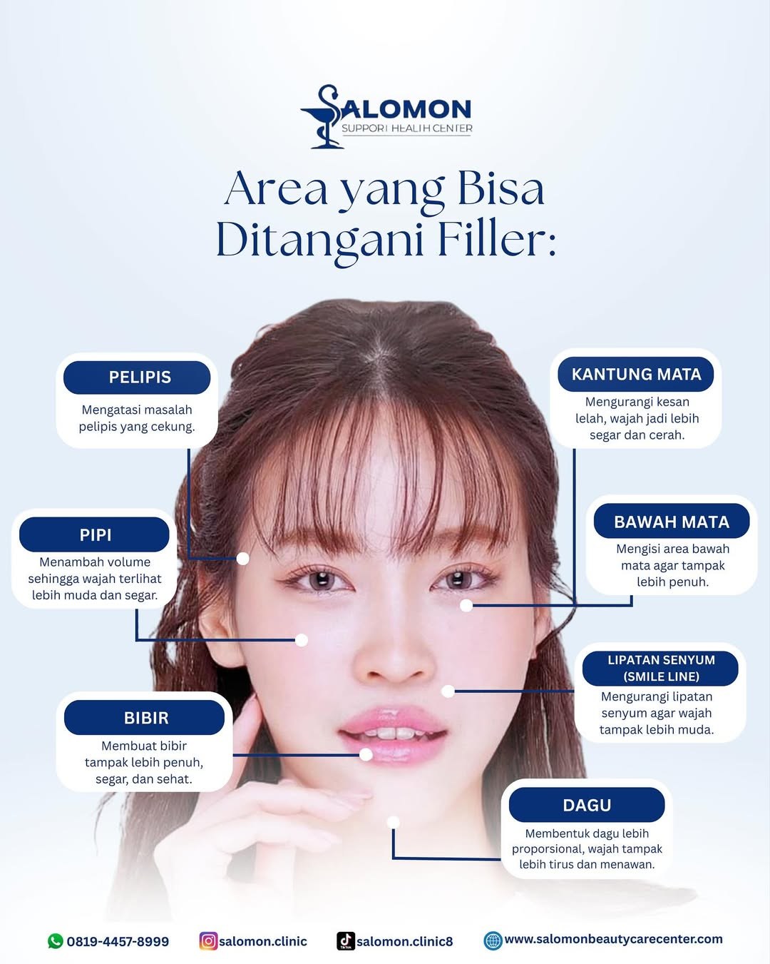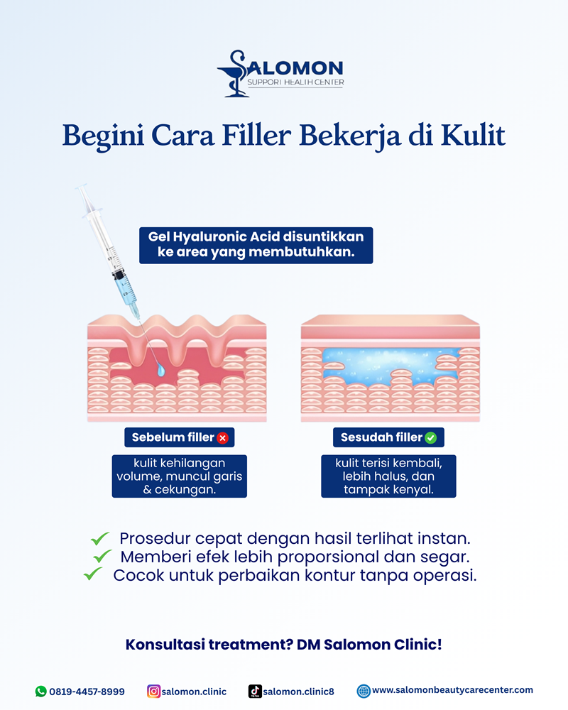 Injeksi gel khusus untuk menambah volume dan memperbaiki kontur wajah agar terlihat lebih proporsional dan harmonis.