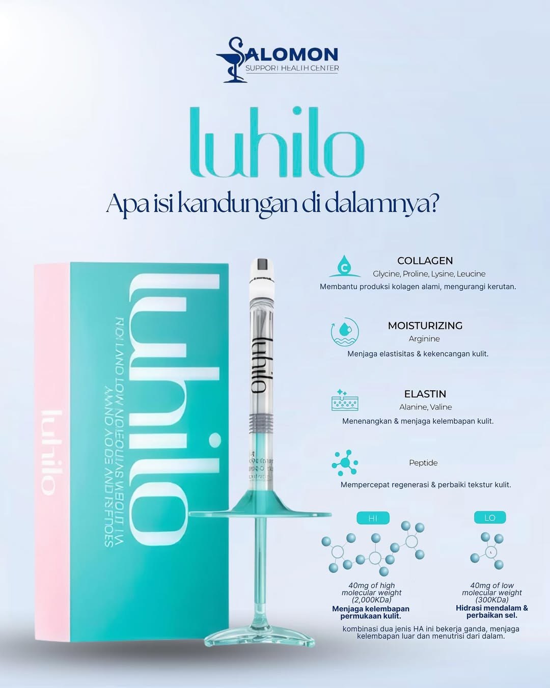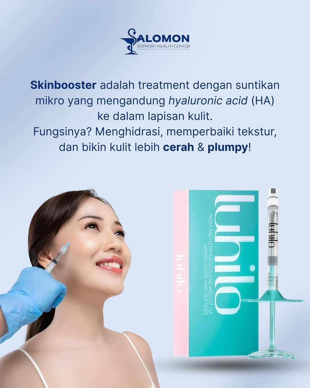 Perawatan injeksi untuk memberikan hidrasi intensif pada kulit sekaligus memperbaiki tekstur dan elastisitas kulit dari dalam.