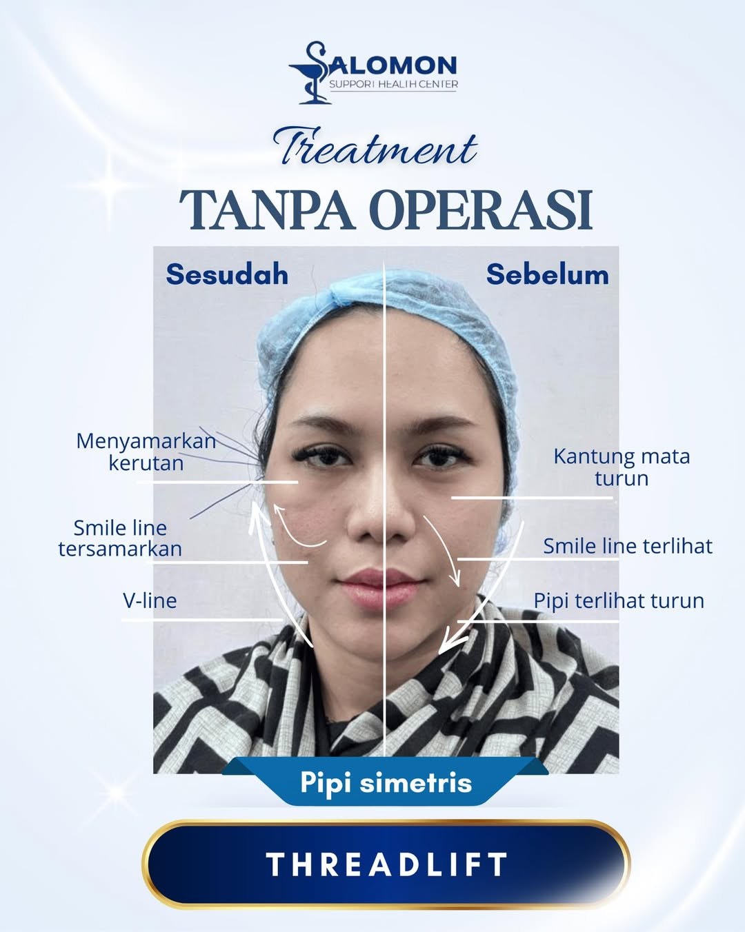 Perawatan tanam benang untuk mengangkat dan mengencangkan kulit wajah secara instan tanpa operasi dengan hasil yang tetap natural.